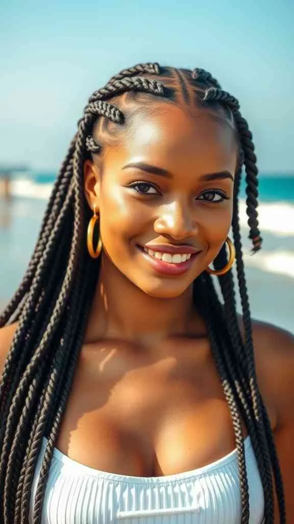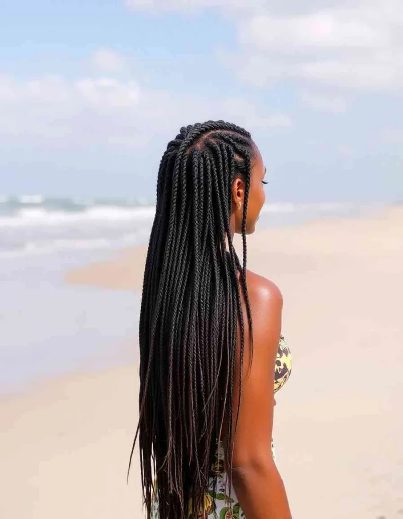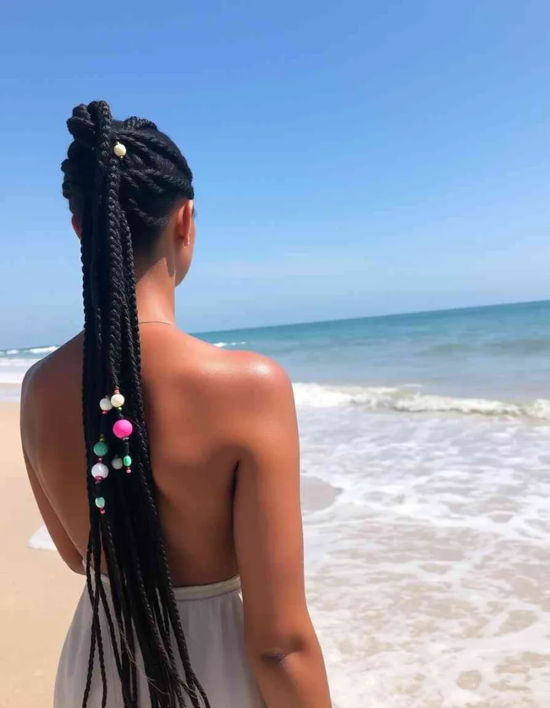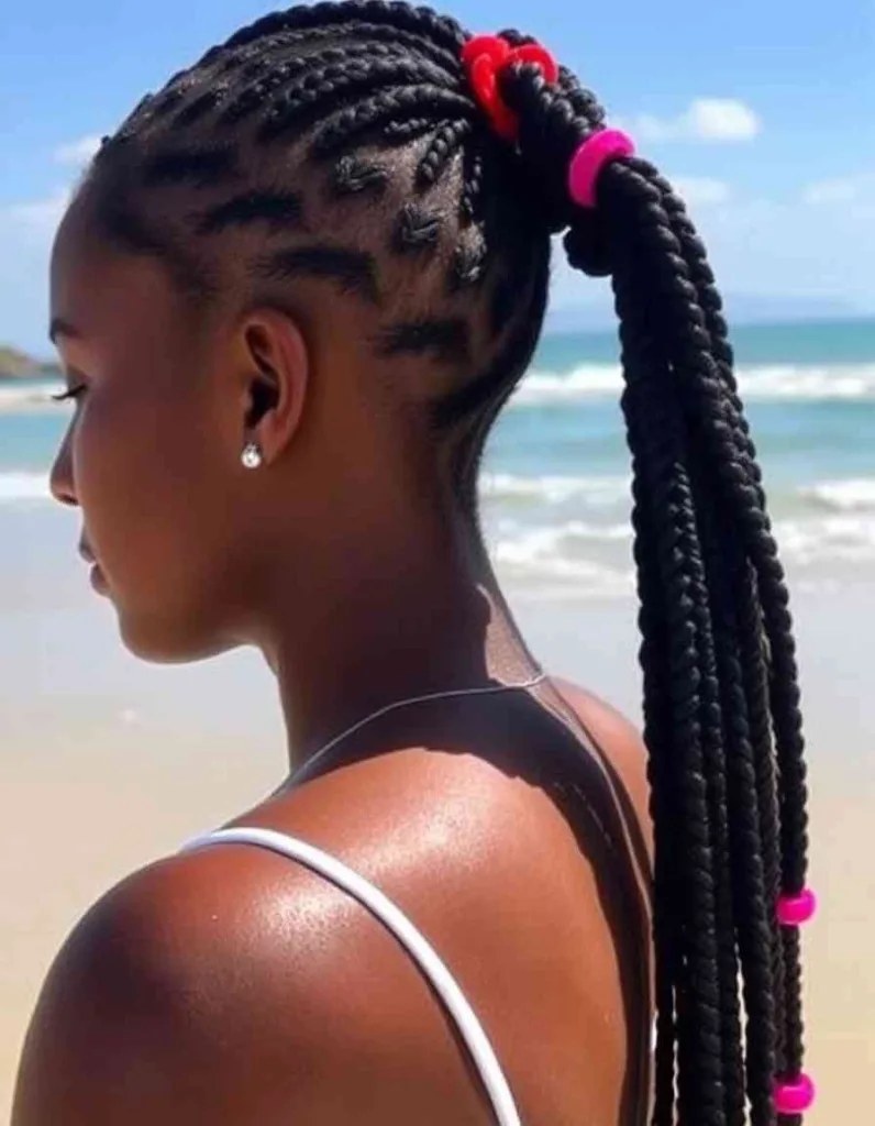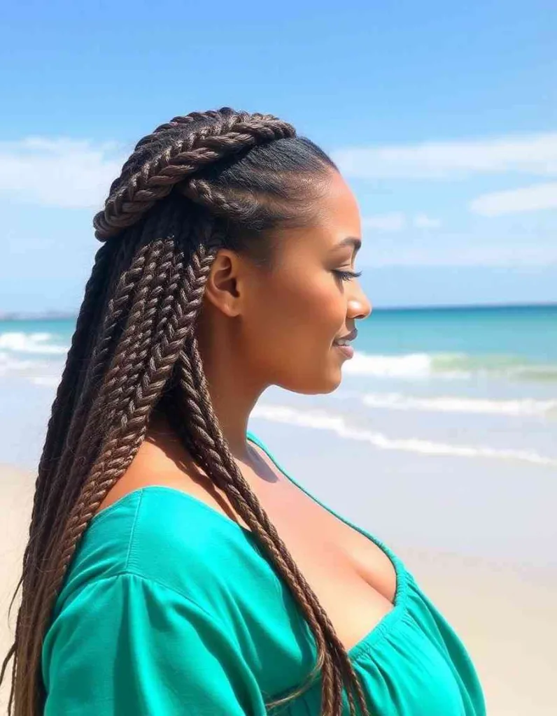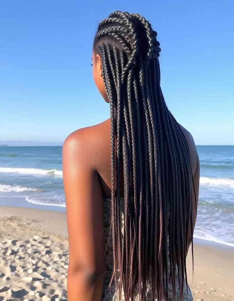 Feed-in braids have a lot of length and volume for a seamless appearance. For a sun-ready braid style that shines in every photo, add hair cuffs or gold thread. It’s a protective look that celebrates creativity and culture, making it ideal for any festival.