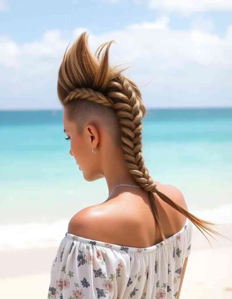 For a fierce mohawk braid updo, braid the sides of your hair upward and leave the center full and textured.